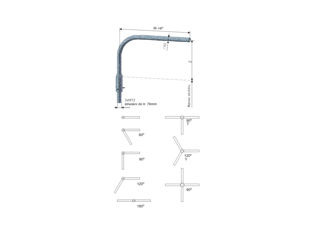 Výložník k osvětlovacím stožárům