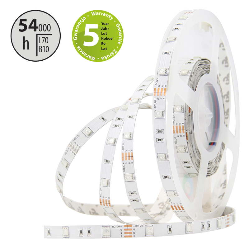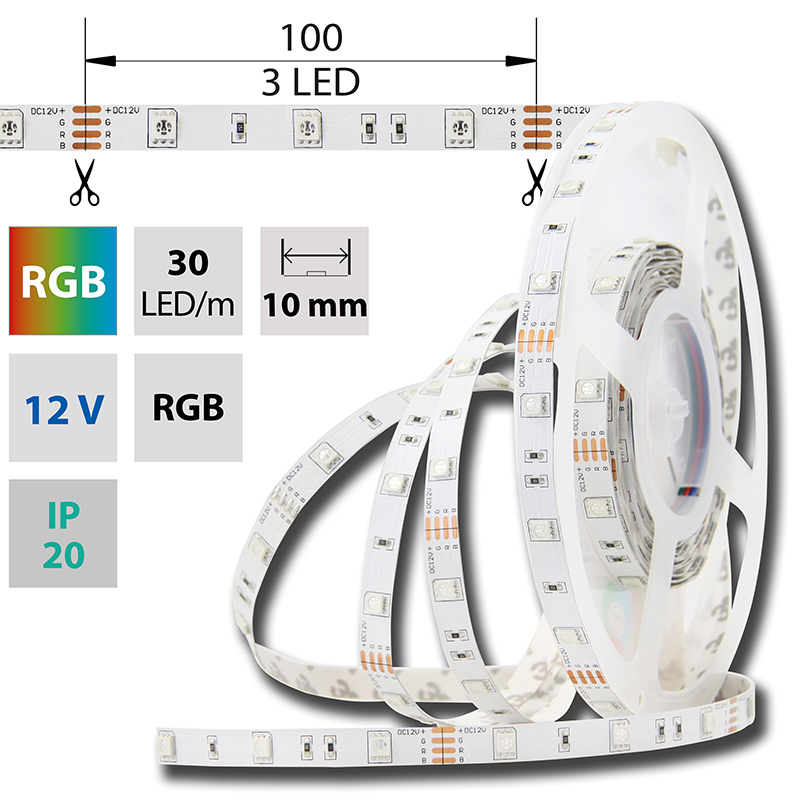 LED pásek SMD5050 RGB, 30LED/m, 7,2W/m, DC12V, 280lm/m, IP20, 10mm, 50m
