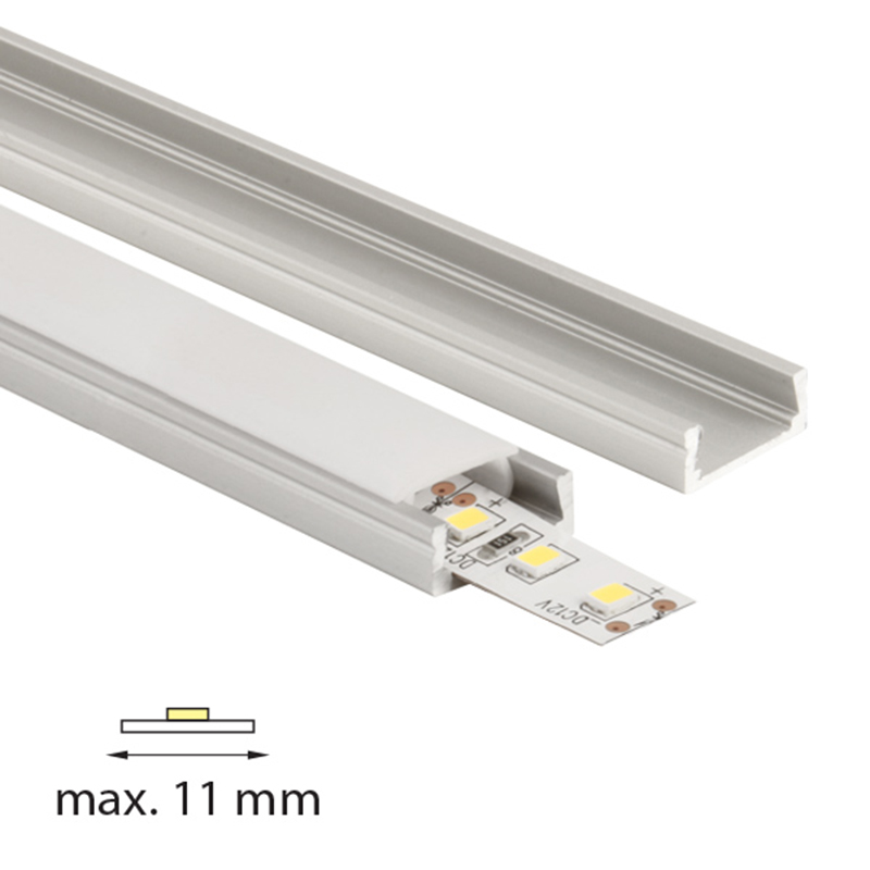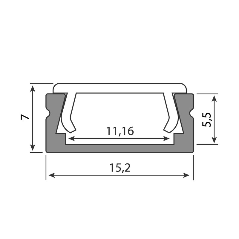Přisazený hliníkový profil PG, 15x7 mm, včetně mléčného difuzoru, 1 m