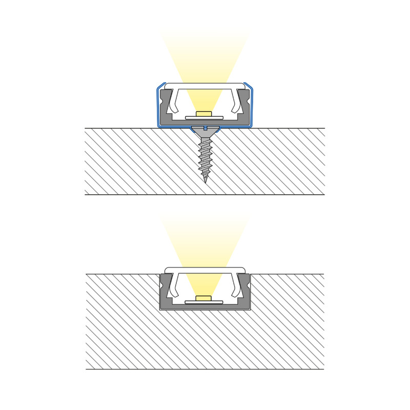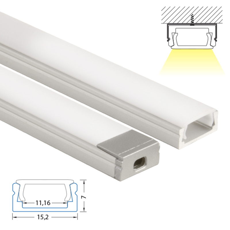 Přisazený hliníkový profil PG, 15x7 mm, včetně mléčného difuzoru, 2 m