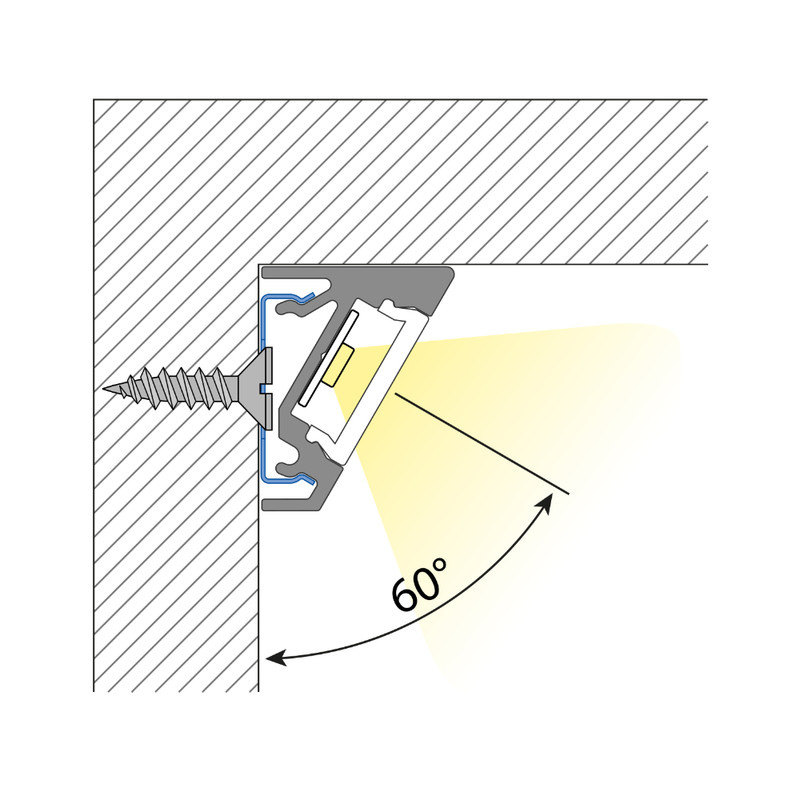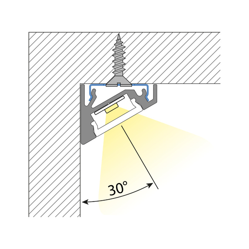 Profil AL 19x15x2000mm RN s mléčným krytem přisazený rohový MCLED