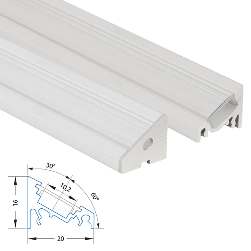 Rohový hliníkový profil RQ, 20x16 mm, včetně čirého difuzoru, 2 m