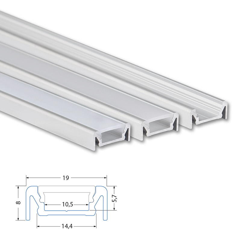 Profil AL 20x8x1000mm PU s mléčným krytem přisazený MCLED | Bi Esse Cz s.r.o.