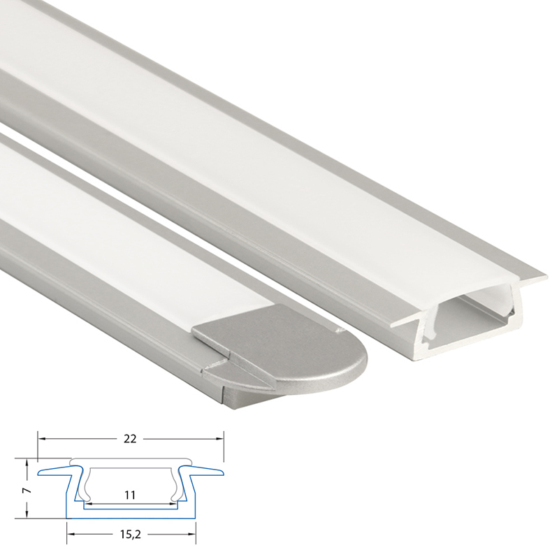 Vestavný hliníkový profil VR, 22x7 mm, včetně mléčného difuzoru, 1 m
