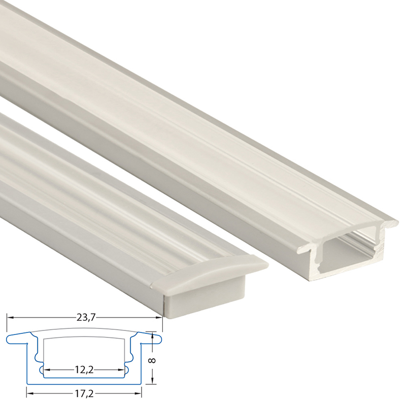 Vestavný hliníkový profil VO, 23x8 mm, včetně čirého difuzoru, 2 m