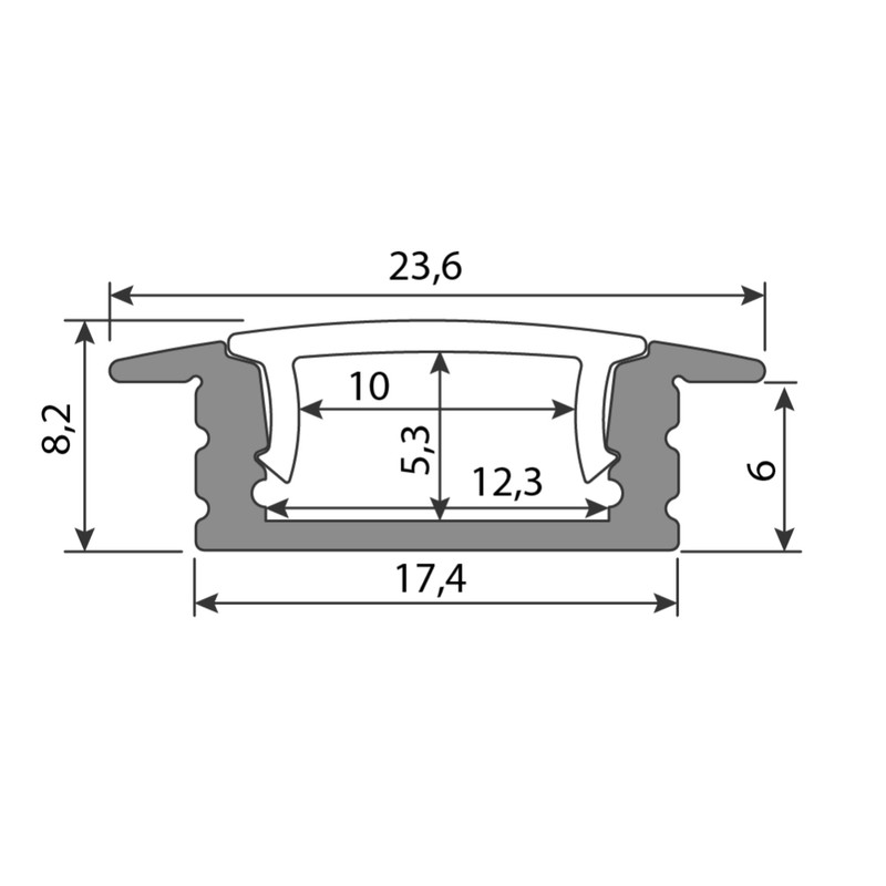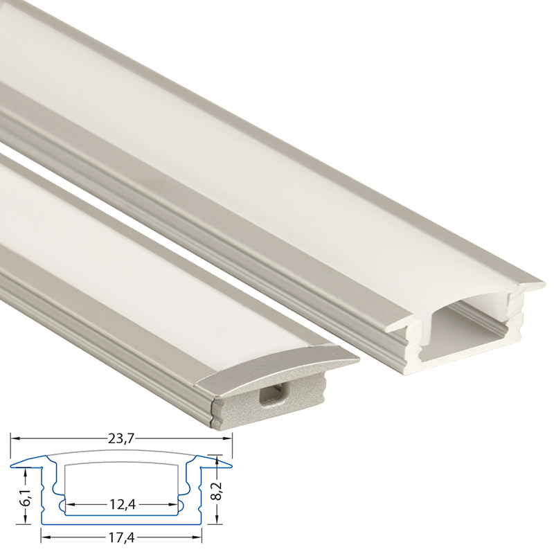 Vestavný hliníkový profil VS, 24x8 mm, včetně mléčného difuzoru, 2 m