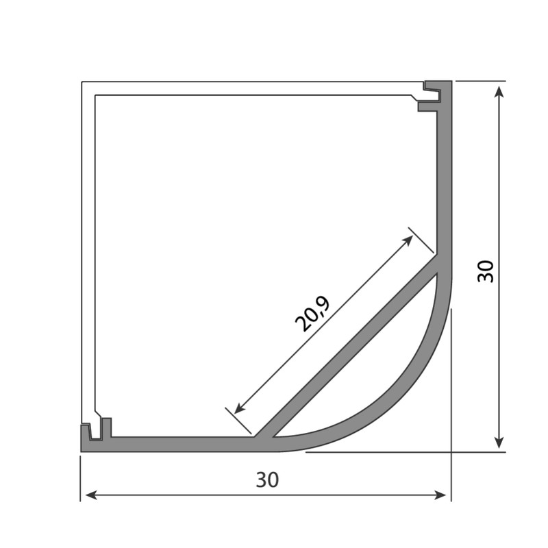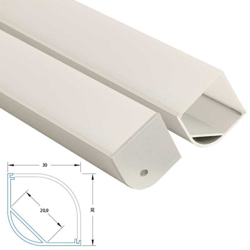 Rohový hliníkový profil RH, 30x30 mm, včetně matného difuzoru, 2 m