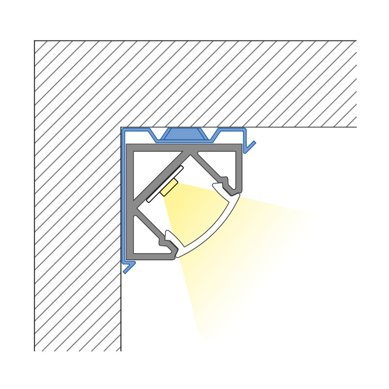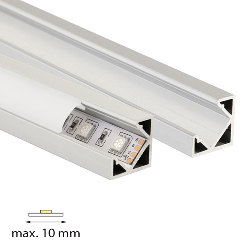 Rohový hliníkový profil RT, 19x19 mm, včetně mléčného difuzoru, 2 m