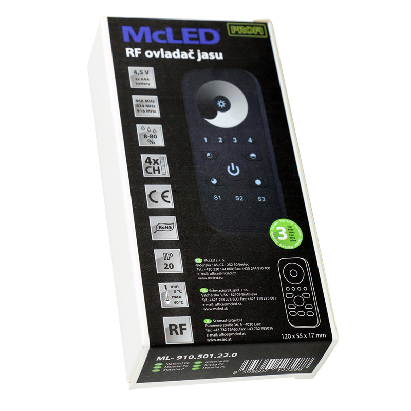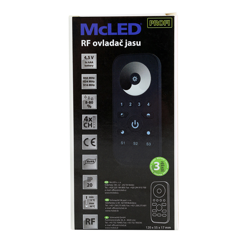 RF ovladač - řízení jasu, 4 zóny