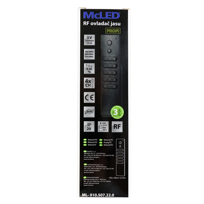 RF ovladač Slim - řízení jasu, 4 zóny