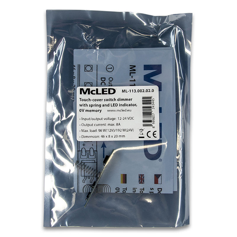 Dotykový stmívač LED pásku do hliníkových profilů, s pružinou a paměťovou funkcí