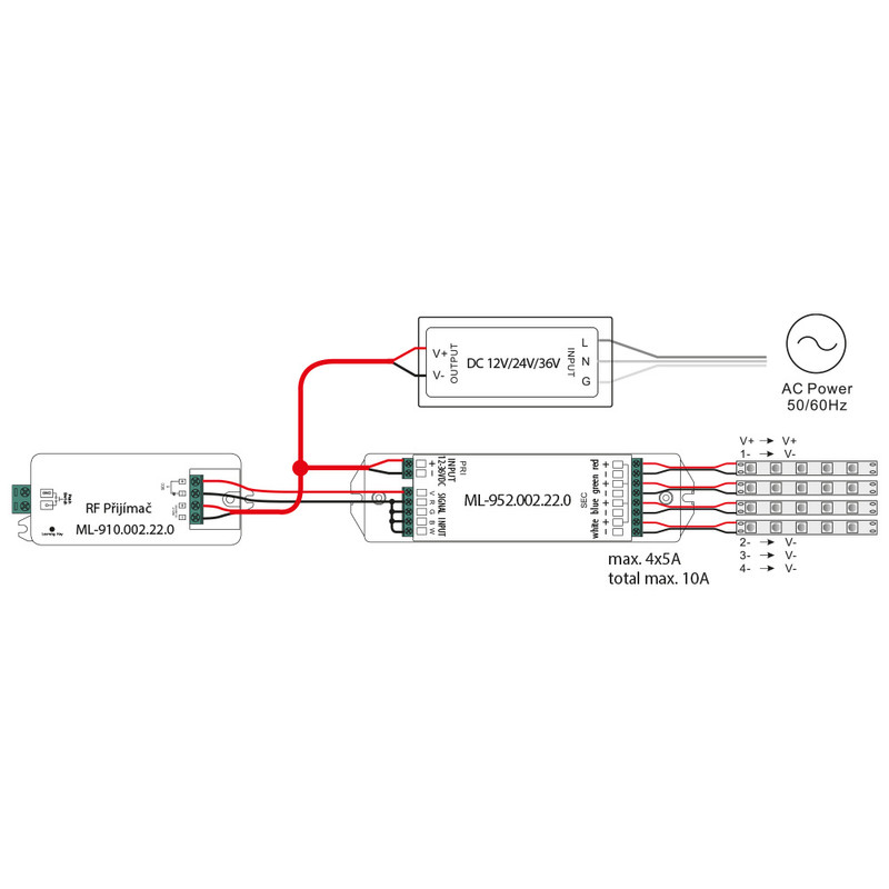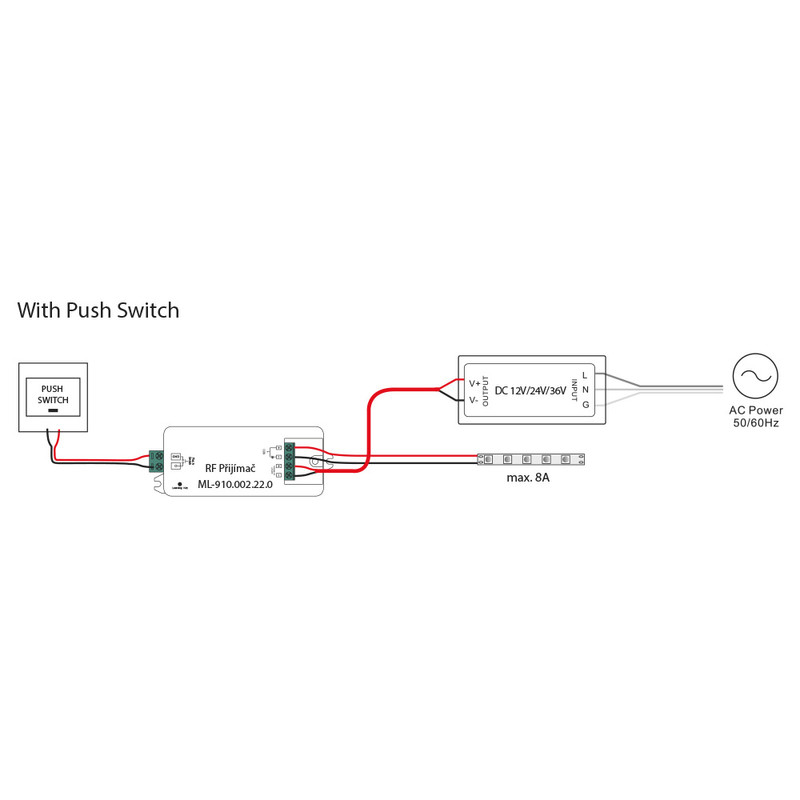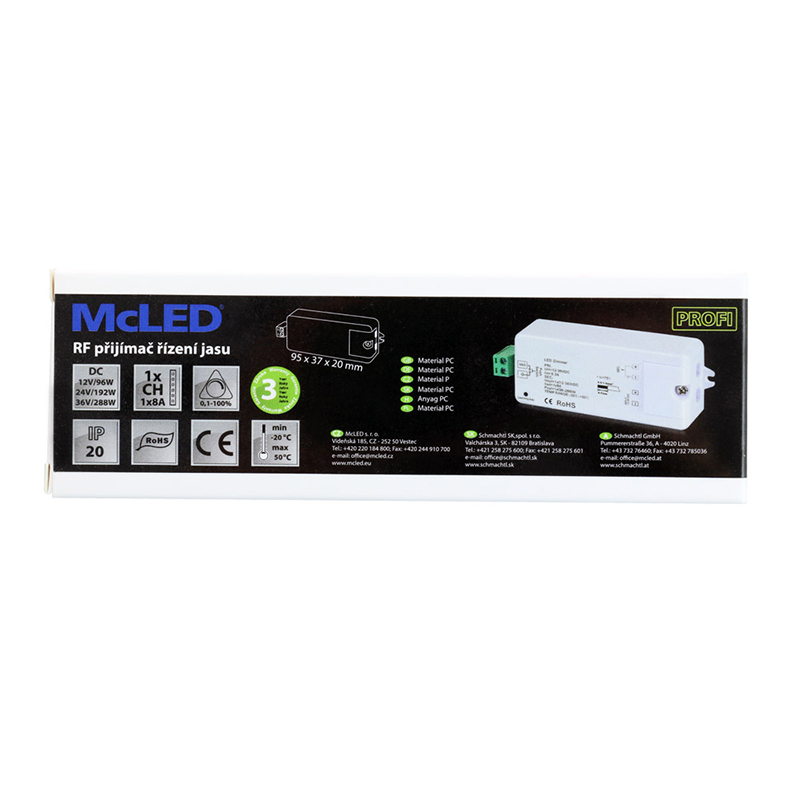 RF přijímač - řízení jasu, 1 kanál 8A, 12-36V