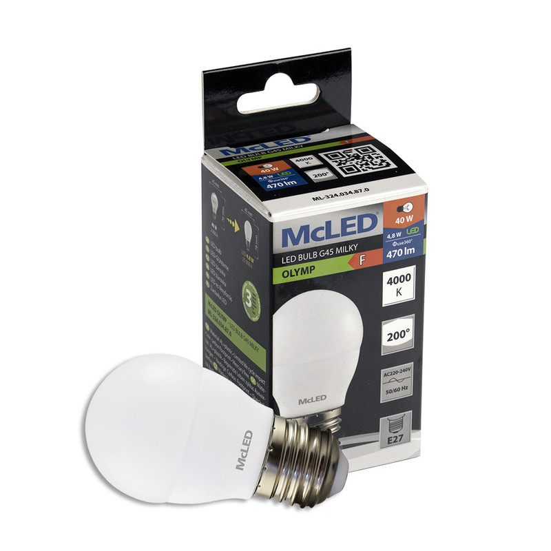 LED žárovka kapka 4,8W, E27, 4000K, CRI80, vyz. úhel 200°, Φ use 360° 470lm