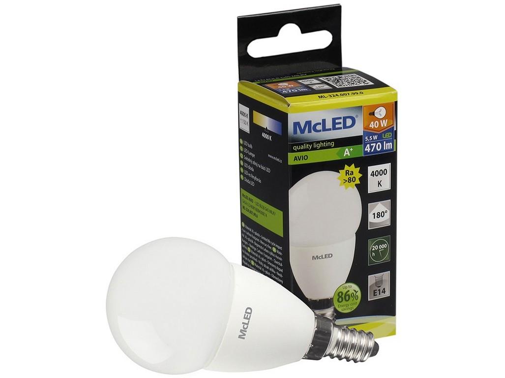 Žárovka LED 5,5W/40W E14 ilum. baňka 4000K 180° 490lm MCLED | Bi Esse Cz s.r.o.