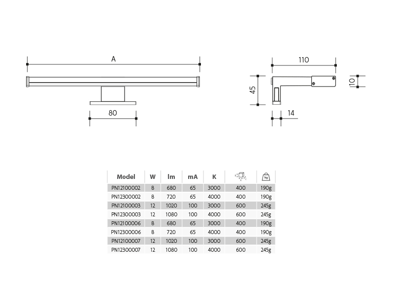 LED svítidlo na zrcadlo do koupelny ARVEN IP44 12W 4000K černá