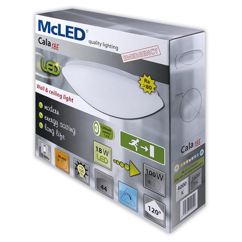 LED svítidlo Cala 18 E, 18 W, 4000 K, IP44, s nouzovým modulem 1,5 h