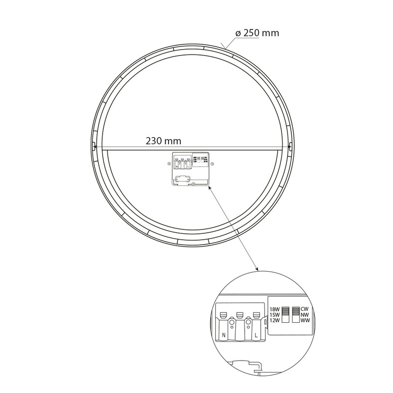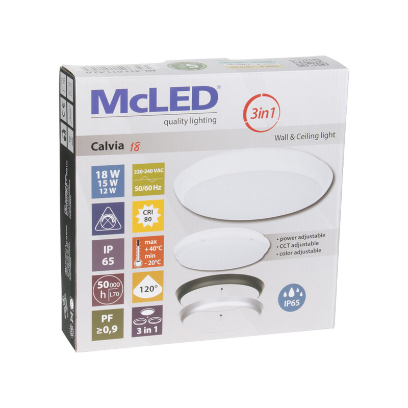 LED svítidlo Calvia 18, 18W, 3CCT (3000K, 4000K, 6000K), 120°, IP65, s přepínáním výkonu 12W,15W, 18W a dekorativními límci bílý, černý, stříbrný