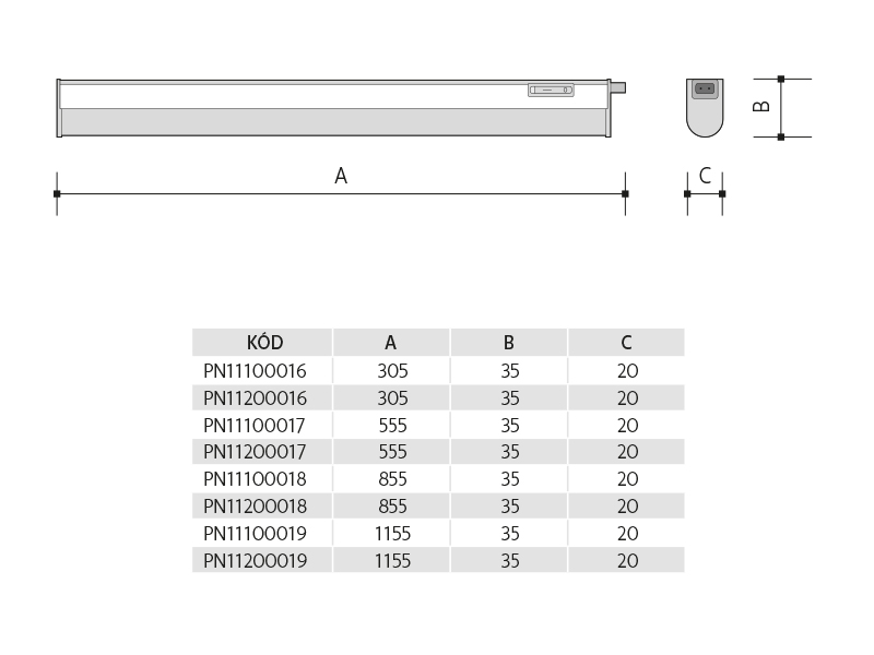 Svítidlo pod kuchyňskou linku s vypínačem LINETA LED "podlinka", 11W - teplá bílá