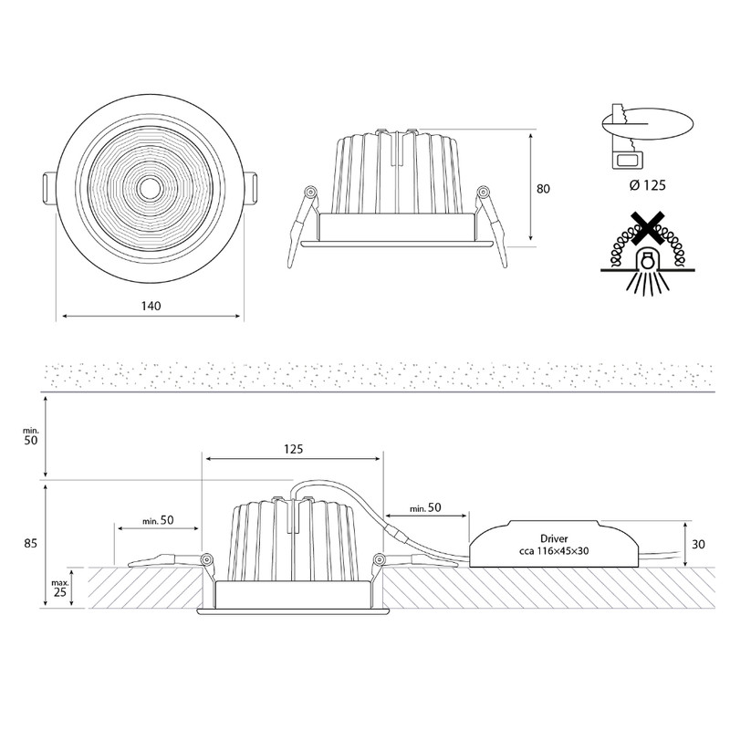 | Vhodné pro stropní upevnění |