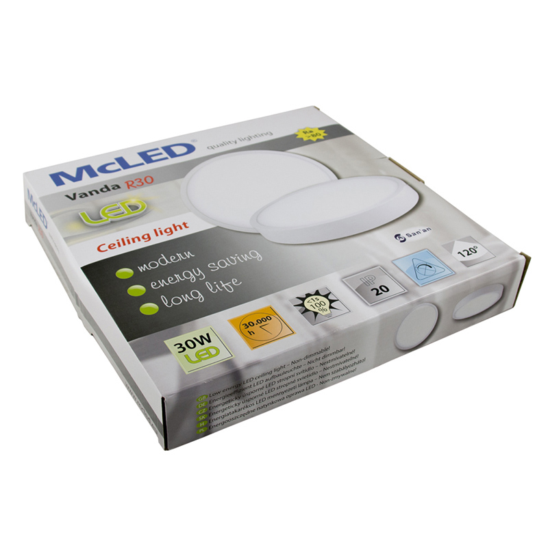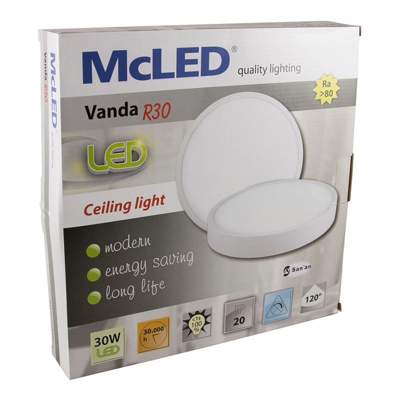 LED svítidlo Vanda R30, 30W, 3000K, Ra80, vyzařovací úhel 120°, IP20