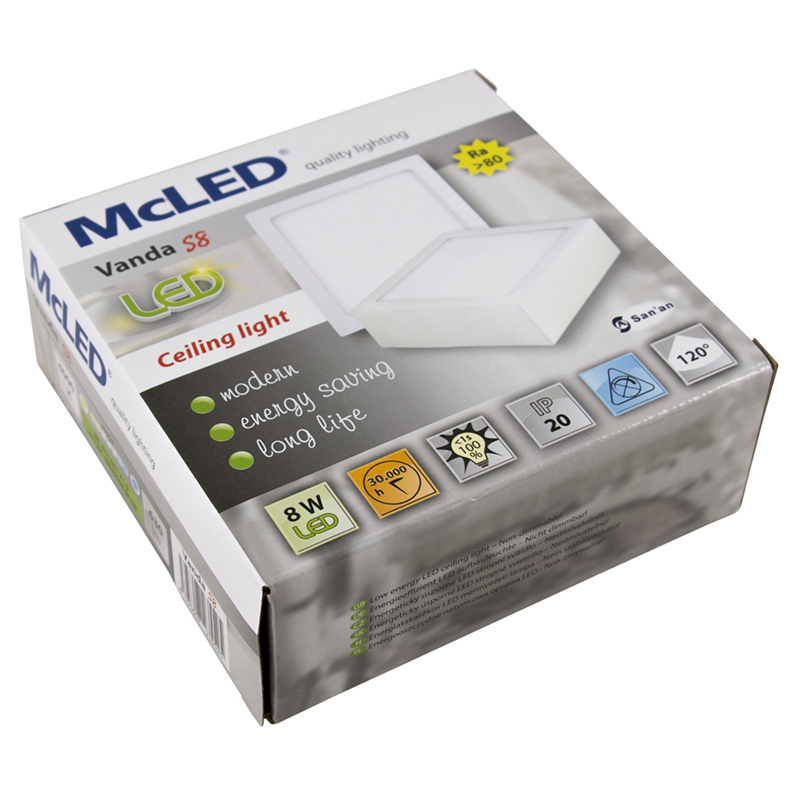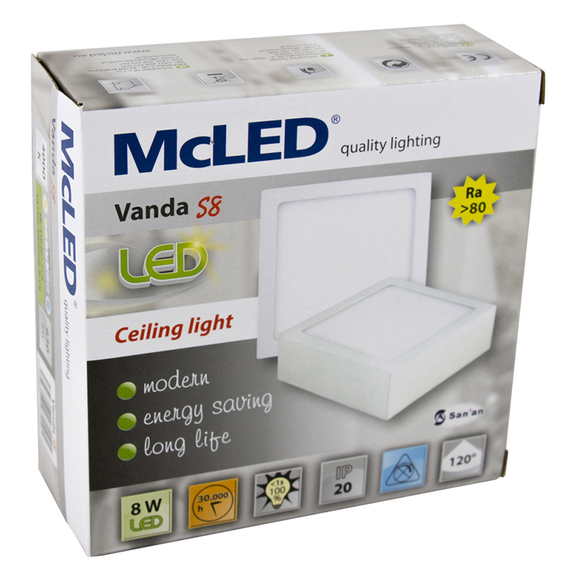 LED svítidlo Vanda S8, 8W, 4000K, Ra80, vyzařovací úhel 120°, IP20