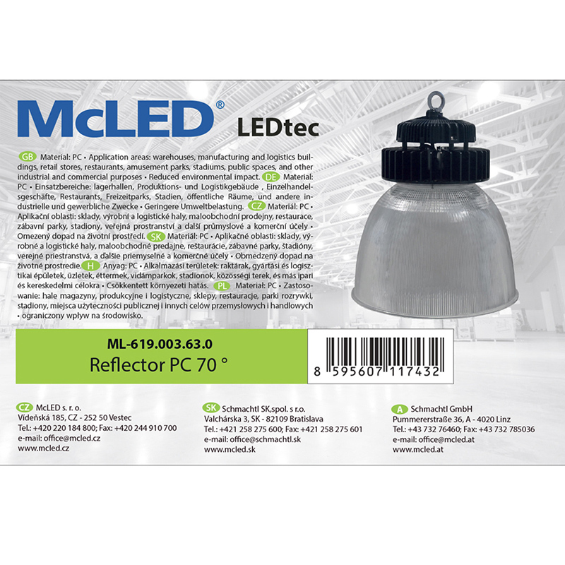 PC reflektor 70 ° k průmyslovému svítidlu LEDtec