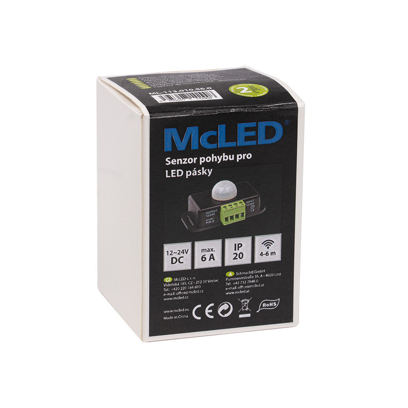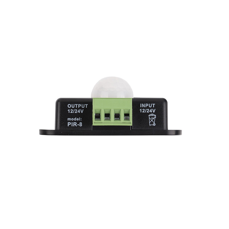 Pohybový PIR senzor, DC 12-24V, max. 6A, IP20, černý