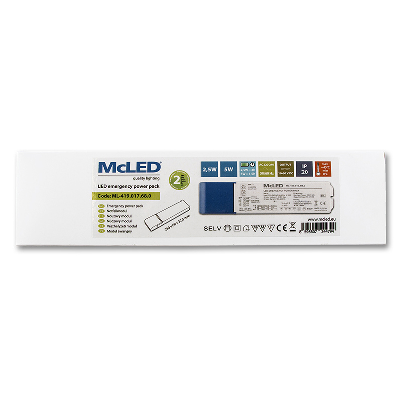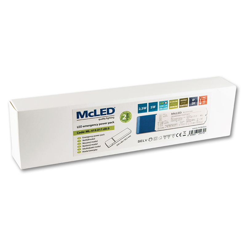 Nouzový modul pro svítidla McLED, max. 5W, 10 - 60V, 1,5Ah, 1,5-3h doba zálohy