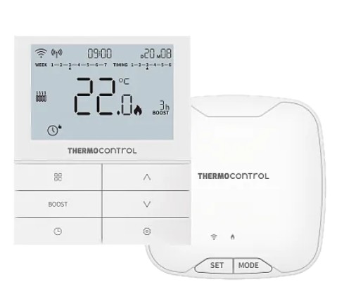 TC 920RF-WIFI je bezdrátový programovatelný Wi-Fi termostat s moderním designem a možností ovládání přes aplikaci Tuya Smart nebo Smart Life