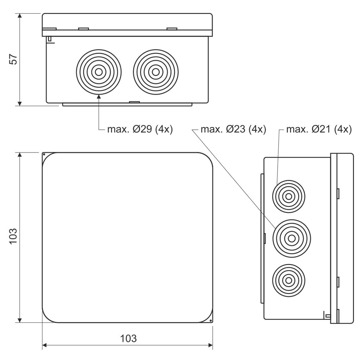 005.CS.K - KRABICE HF IP65, konfigurace KB, barva ŠEDÁ/RAL 7035, balení - 1/56 ks