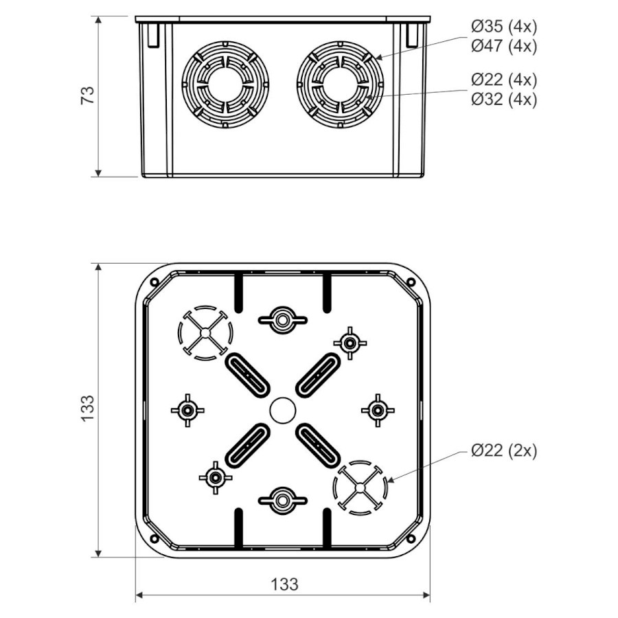 KO 125 - KRABICE ODBOČNÁ, konfigurace KA, barva ŠEDÁ, balení - 1/34 ks