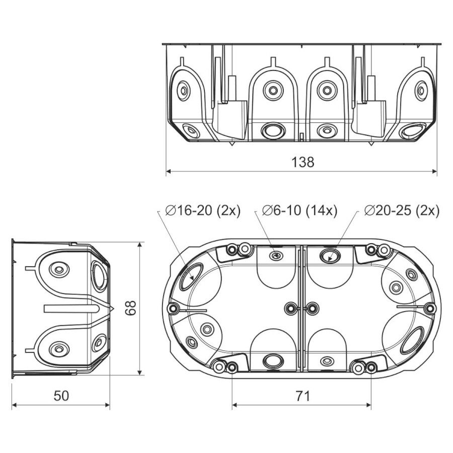 KPL 64-50/2LD - krabice přístrojová, konfigurace NA, barva OKROVÁ, balení - 40 ks