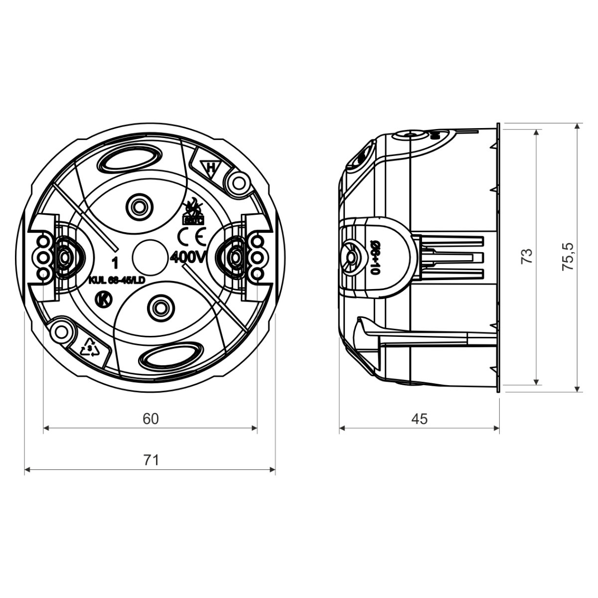 KUL 68-45/LD2 - KRABICE ODBOČNÁ, konfigurace NA, barva OKROVÁ, balení - 100 ks