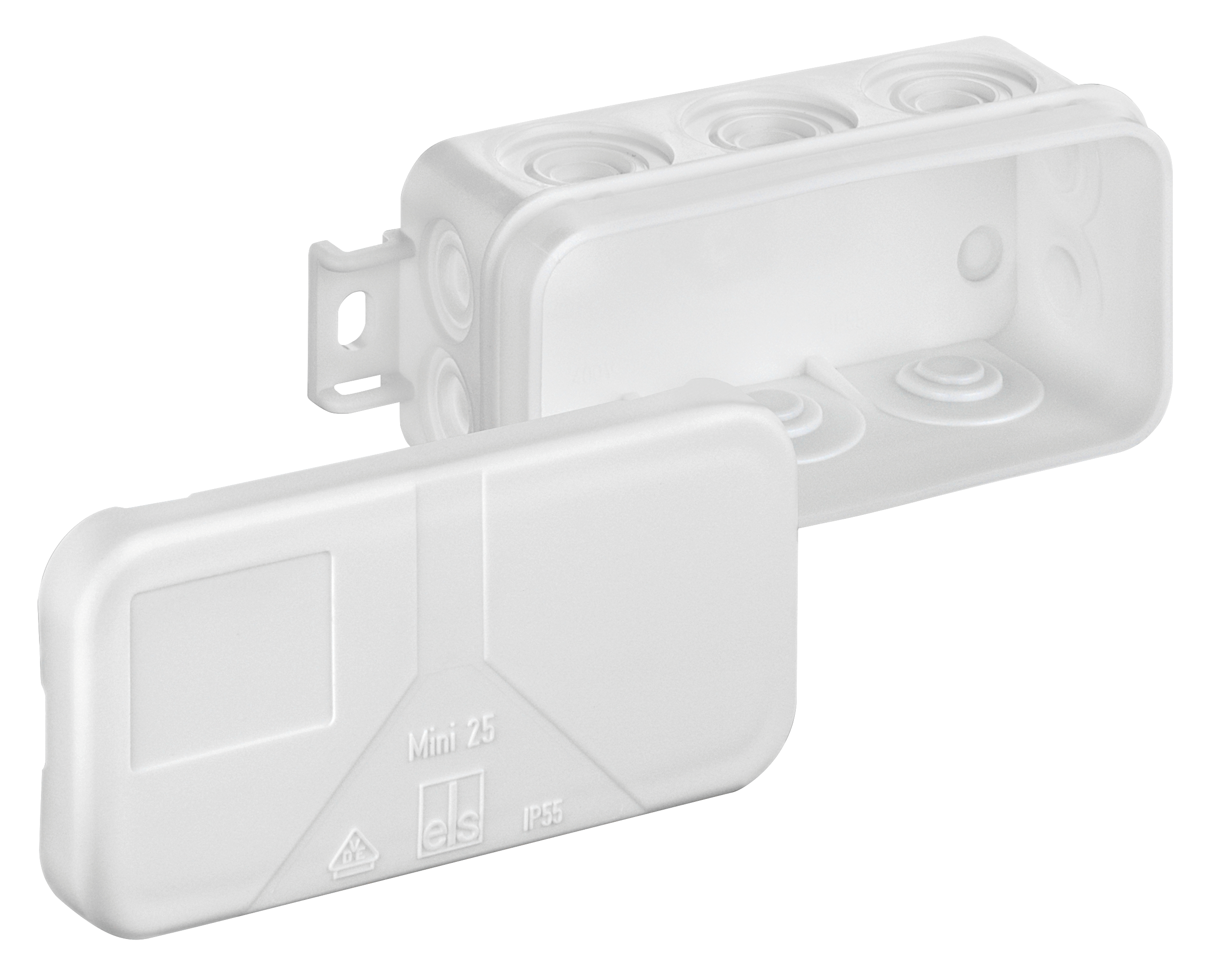 Rozbočovací krabice, druh krytí IP55, max. průřez vodiče 2,5², rázová houževnatost IK07, třída ochrany II, Ui 400V AC, VDE, bez obsahu halogenů
