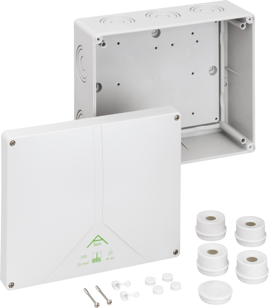 Rozbočovací krabice, druh krytí IP54/IP65 , max. průřez vodiče 25², rázová houževnatost IK07, třída ochrany II, Ui 690V AC, VDE, bez obsahu halogenů