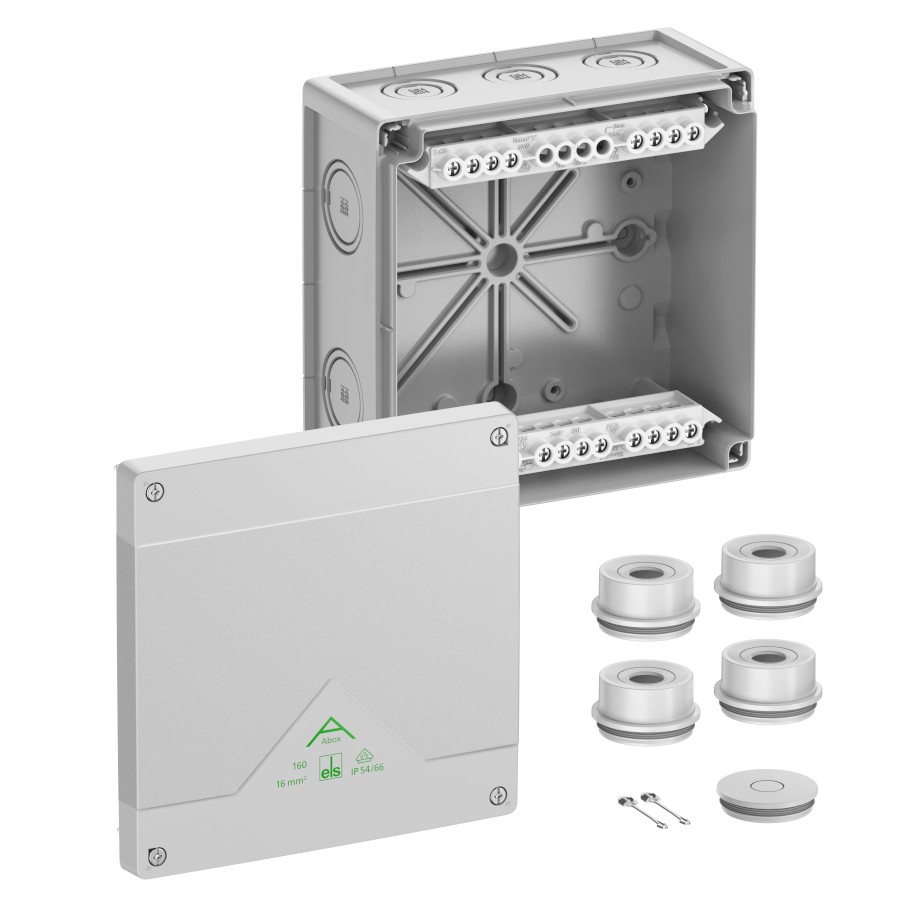 Rozbočovací krabice, druh krytí IP55/IP66, max. 16², rázová houževnatost IK07, třída ochrany II, Ui 690V AC, Ui 690V DC, DLG, VDE, bez obsahu halogenů