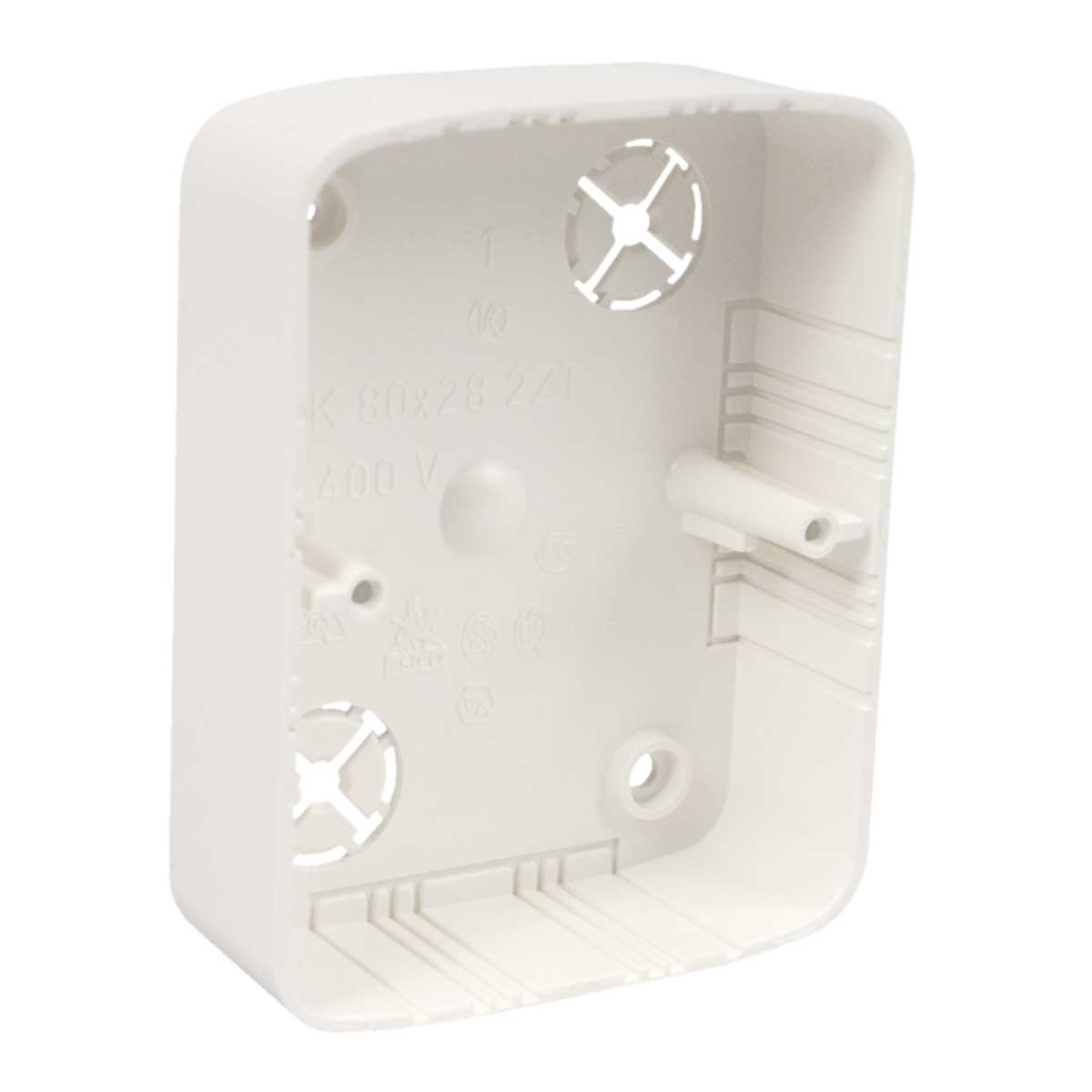 LK 80X28 2ZT - KRABICE LIŠTOVÁ, konfigurace HB, barva SUPERBÍLÁ/RAL9003, balení - 10/80 ks - určené pro dvouzásuvky modelové řady Tango. Pro instalaci na materiály třídy reakce na oheň E nebo F použijte izolační podložku.