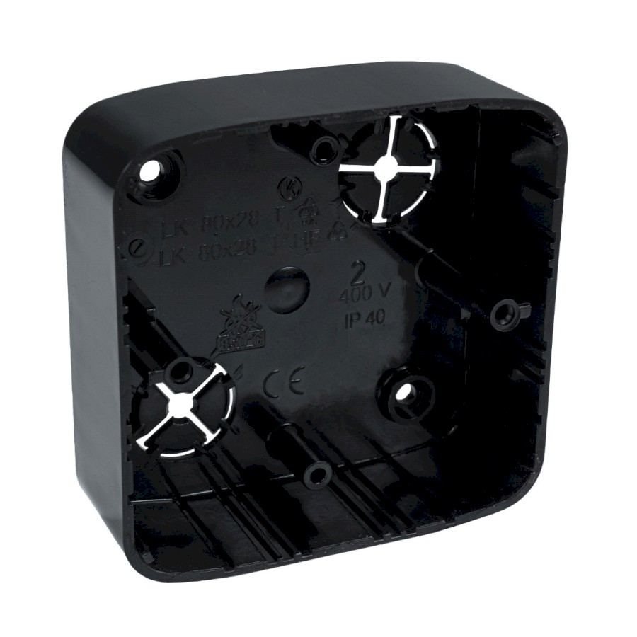 LK 80X28 T_FB - KRABICE LIŠTOVÁ, konfigurace FB, barva černá, balení po 10 ks ve folii, 100 ks v kartonu, určené pro přístroje modelové řady Tango s velkou montážní hloubkou, pro instalaci na materiály třídy reakce na oheň E nebo F použijte izolační podložku, odstín pro instalace k lištám v odstínu FD