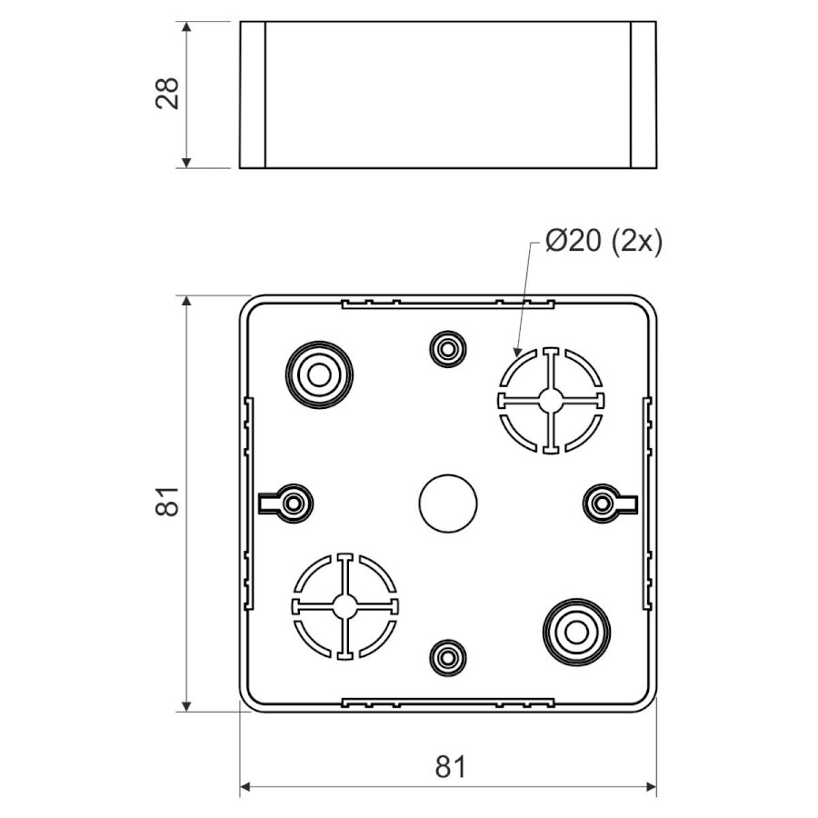 LK 80X28R/1 - KRABICE LIŠTOVÁ, konfigurace I1, barva IMITACE/BŘÍZA RŮŽOVÁ, balení - 10/120 ks