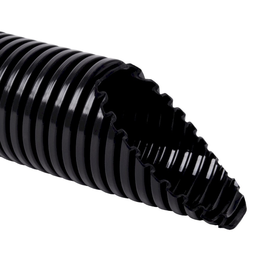Ohebná trubka UV stabilní bezhalogenová PA pr. 21,2 mm, mechanická odolnost 350N/5cm, černá, balení 50 m.