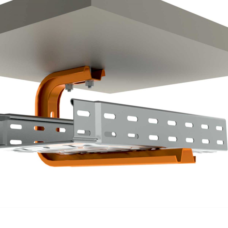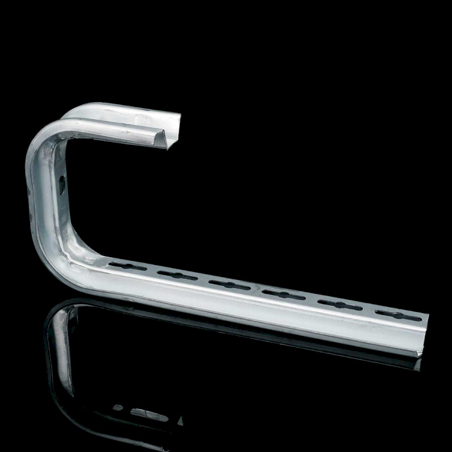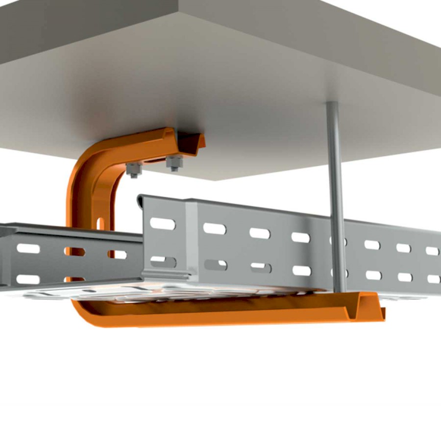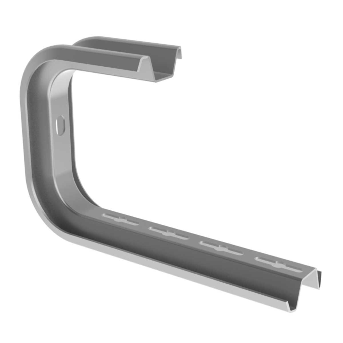 Třmen závěsný tvaru C pro montáž kabelového nosného systému na stěnu nebo strop, určen pro kabelové trasy šíře 200 mm, povrchová úprava sendzimir