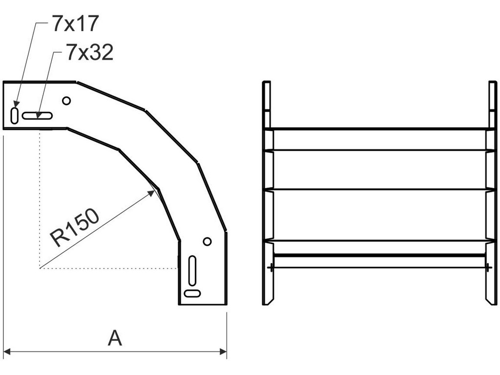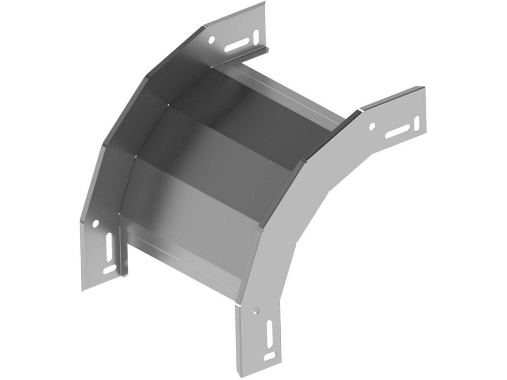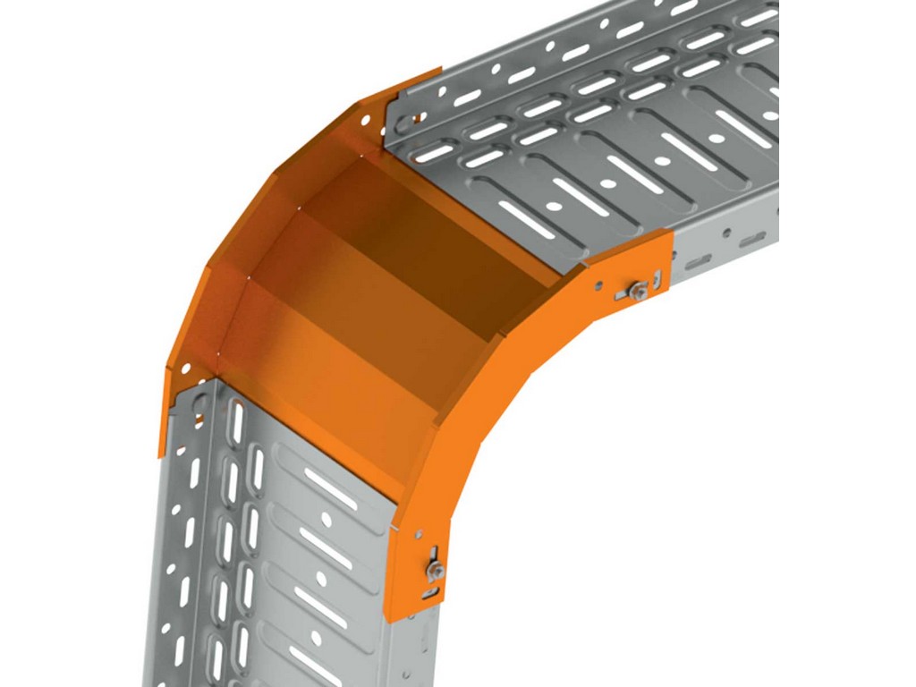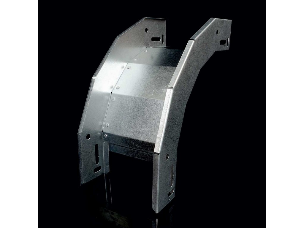 Klesající oblouk pro kabelové trasy rozměru 50x62, povrchová úprava sendzimir, spojení s kabelovými žlaby je bez použití spojek, slouží k vytvoření klesání trasy pod úhlem 90°