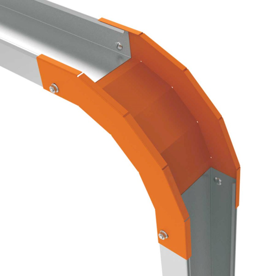 Klesající oblouk slouží k vytvoření změny trasy ve svislém směru o 90° pro nerezové kabelové žlaby rozměru 100x500 mm