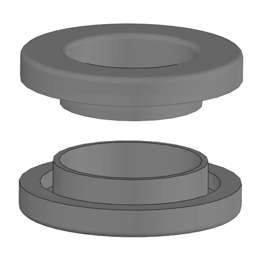Průchodka velikosti 13 pro vyvedení kabelu z kabelového žlabu, instaluje se do vyvrtané díry v kabelovém žlabu, poloviny se tlakem stlačí k sobě a zafixují ke žlabu