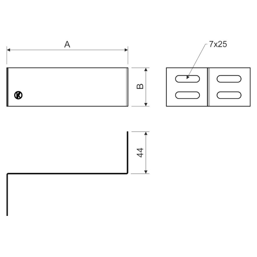 Redukce pro přechod mezi kabelovými žlaby lišící se o šířku 250 mm, povrchová úprava sendzimir