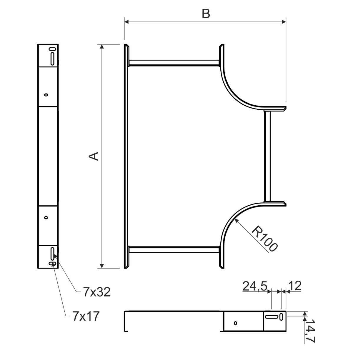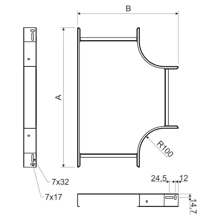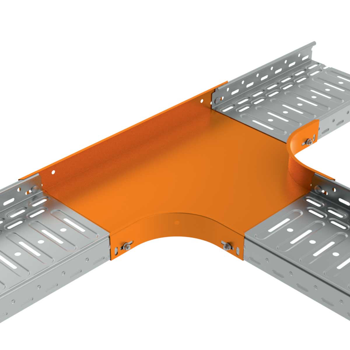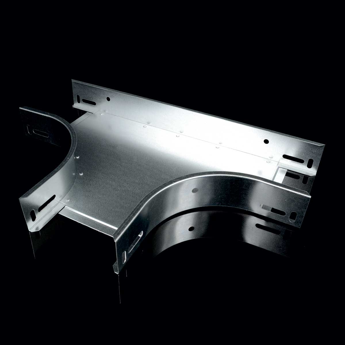 Slouží k vytvoření odbočení kabelové trasy do tvaru T v horizontálním směru pro kabelové trasy rozměru 100x125 na trasu stejného rozměru, povrchová úprava sendzimir
