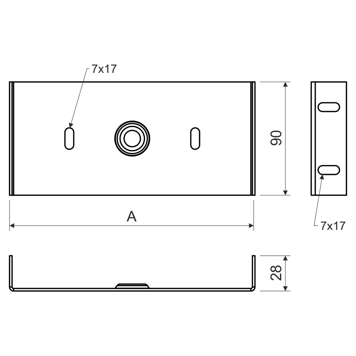 Vnitřní závěs pro zavěšení kabelových tras pomocí jedné závitové tyče ze stropu, pro žlaby s výškou bočnice 35 a 60 a šířkou 150, vhodné pro kabelové trasy s povrchovou úpravou žárový zinek