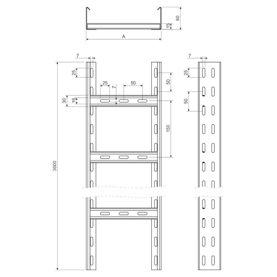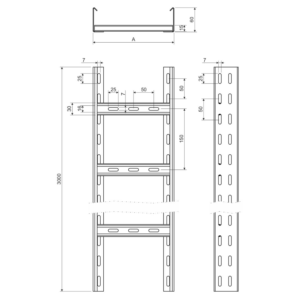 Kabelová lávka rozměru 60x200 mm, určená pro systémy se zachováním funkčnosti při požáru, povrchová úprava sendzimir, rozteč příček 150 mm, pro fixaci kabelů v lávce je možné použít příchytek typu PKC
