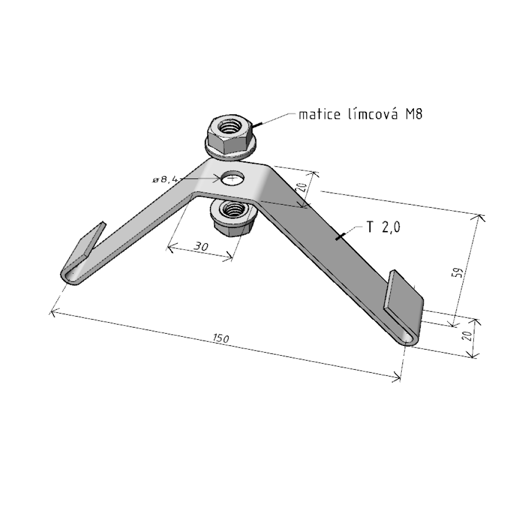 Držák DZM 3/150 se používá pro zavěšení kabelových žlabů šířky 150 mm na závitové tyče M8. Lze jej využít i jako nosný prvek pro instalaci různých typů svítidel. Maximální doporučené zatížení držáku je 50 kg. Tento držák nelze použít v kombinaci s víkem žlabu. V případě požadavku instalace s víkem je nutné použít podpěry PZM, nebo držáky DZM 6.