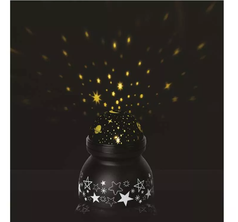 Existuje nějaká dekorace, kterou budou vaše děti doslova zbožňovat? Určitě to bude hravý projektor určený pro použití v interiéru, který na stěnu, strop nebo nábytek promítá pohybující se motivy hvězdiček a planet v teplé bílé barvě. Projektor je napájen AAA bateriemi nebo pomocí USB adaptéru a jeho použití nejen v dětském pokoji je tak zcela bezpečné. Dopřejte svým dětem bezstarostné usínání při pohledu na uklidňující hvězdnou oblohu.